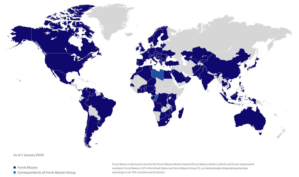 Forvis Mazars – це глобальне партнерство між двома фірмами (Mazars і FORVIS). Ми спеціалізуємося на аудиторських, податкових і консалтингових послугах.
